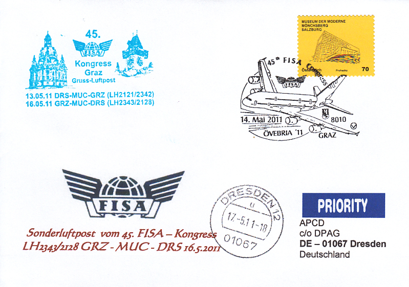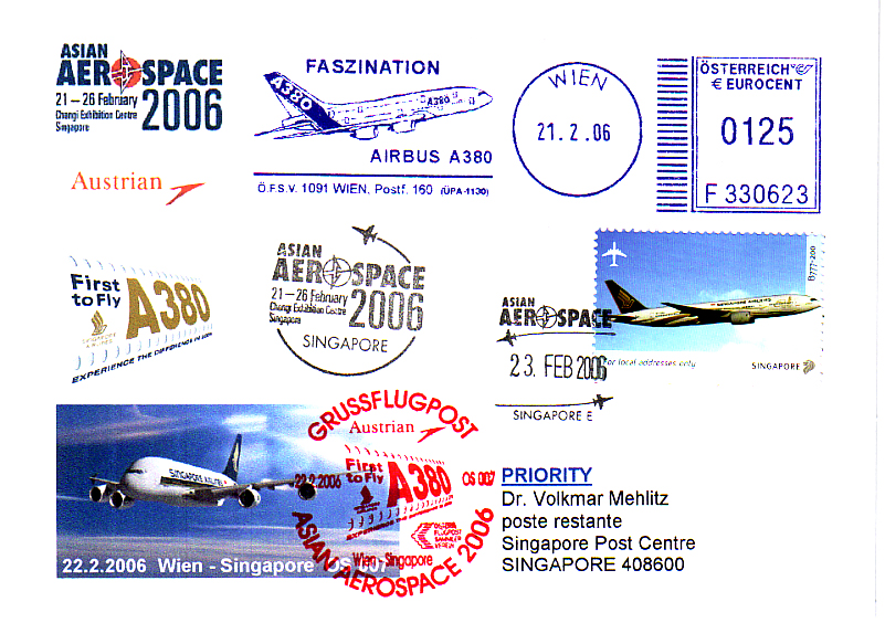 Sonderflugpost; Austrian Airlines; Frankfurt - Wien; 60 Jahre |