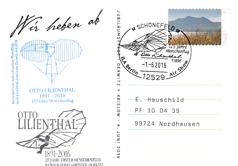 Helikopterflugpost; 125 Jahre Menschenflug; Derwitz; |