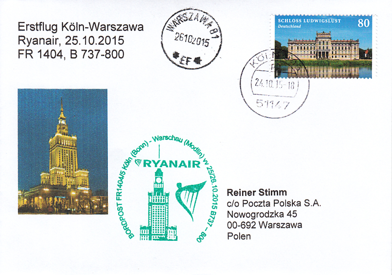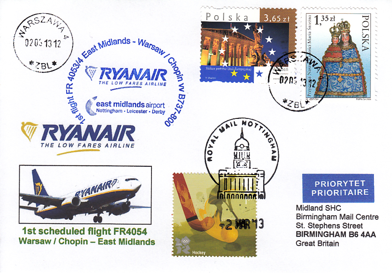 Erstflugpost; Ryanair; Dublin - Hamburg; |