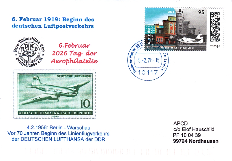 Berlin; Tag der Aerophilatelie 2026; 1919 Beginn des deutschen Luftpostverkehrs; 1956 Beginn des Linienflugverkehr der DLH |